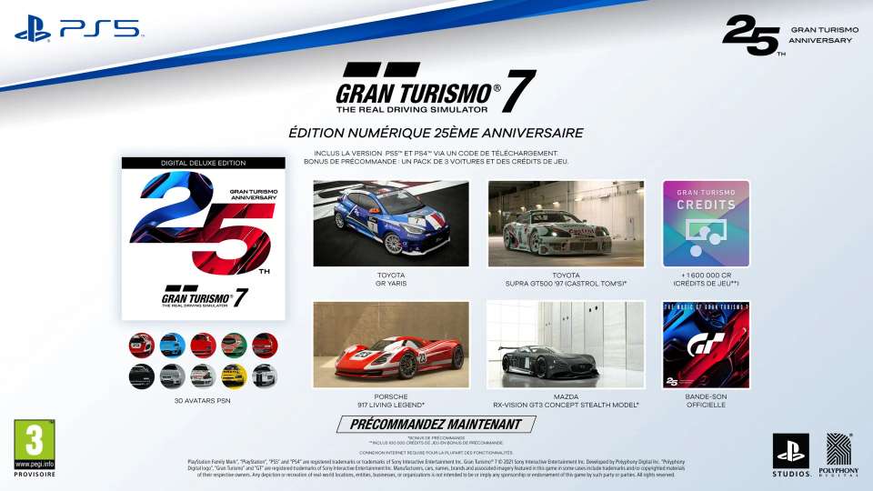 Les précommandes pour Gran Turismo 7 sont à présent ouvertes, en dématérialisé sur le PlayStation Store mais également en édition physique chez les revendeurs habituels.