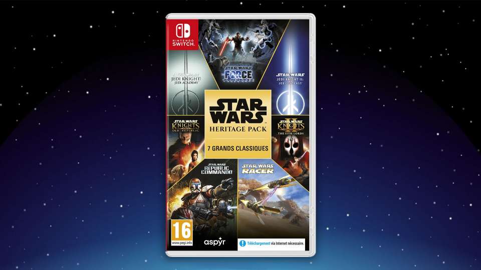 Sept jeux cultes de l'univers Star Wars vont se trouver réunis dans la compilation physique Nintendo Switch, sobrement appelée "Star Wars: Pack Héritage" distribuée par Just For Games,et disponible dès le 8 décembre 2023 !