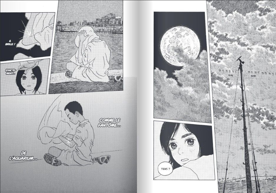 Avec un coup de crayon bien particulier, l’auteur nous emmène dans un voyage onirique et philosophique dans le monde marin. Il s’agit d’une œuvre bien à part, qui ne ressemble à aucune autre. En ce qui concerne le scénario, il me fait penser un peu à du Tezuka, pour la profondeur avec laquelle les thèmes sont abordés. Quant aux illustrations, elles ne sont semblables à aucune autre. Ce trait épais et charbonneux nous offre tantôt des personnages aux contours minimalistes, et tantôt des expressions faciales très détaillées. Il s’agit d’un chef-d’œuvre d’œuvre dont il faut absolument profiter de cette nouvelle édition.