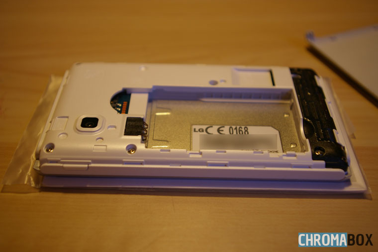 Une fois la coque arrière retirée, les entrailles de l'appareil sont partiellement visibles.