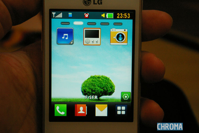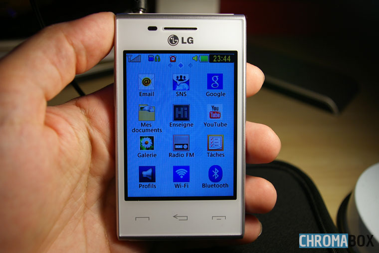 Enfin une information que vous attendez tous, la définition est de 240 pixels de large par 320 de haut. Si vous êtes habitué à un iPhone vous allez être déçu par la faible densité de pixels au centimètre carré. Malgré cet inconvénient mineur nous allons voir ensuite à quel point LG à pensé à nous pour minimiser l’impact de ces caractéristiques maigrichonnes.