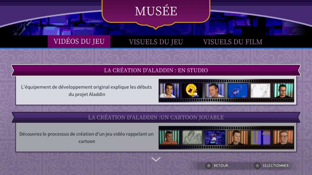 Le musée, à l'instar d'Aladdin, présente des vidéos du jeu et des visuels du film d'animation.