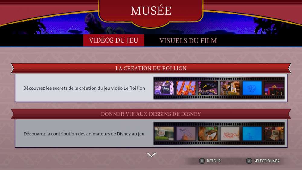 Comme pour Aladdin, le menu principal du Roi Lion propose les mêmes choix :