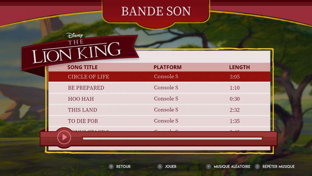 La bande son permettra de lire toutes les musiques présentes dans le jeu.