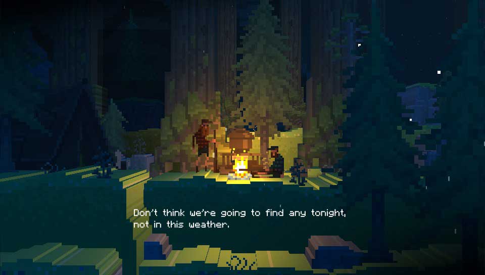 Le charme de ce monde vient tout d’abord du choix de générer celui-ci avec des blocs de pixels (un peu plus finement et avec davantage de détails de terrains que le ferait Minecraft). Cette méthode fait énormément penser au principe des voxels : De grands éléments composés d’une infinité de petits éléments cubiques (ou non).