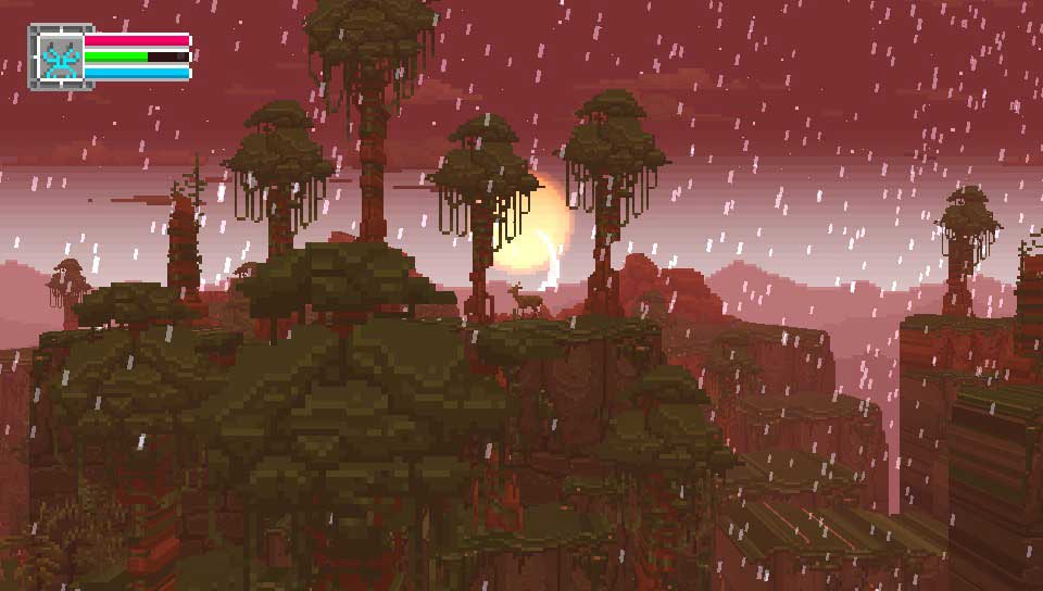Végétation détaillée, "pixel art", effets de lumières, le rendu visuel est soigné