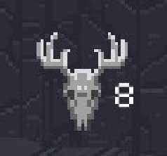 Au dessus de tableau se trouvent les 2 bois du cerf contenant à la manière d’un chandelier des items spéciaux. Quand vous êtes petit vous ne disposez que de 2 emplacements, mais vos bois poussent avec l’âge...